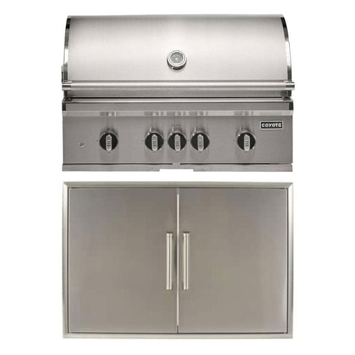 Coyote 36" SL-Series Grill Package - Includes SL-Series 36" Built-In Gas Grill with Sear Zone & Rotisserie, 36" Double Access Door - C3SL36+CDA2436