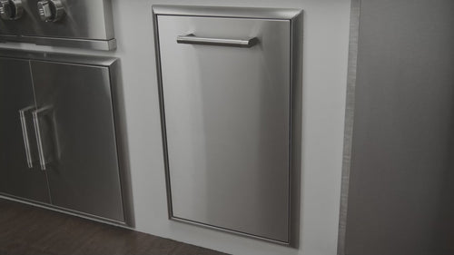 - Drawer contains one 13 gallon trash bid & one recycle bin
