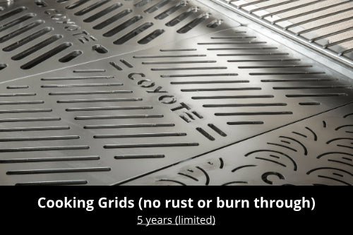 Coyote Outdoor may require the return of defective parts for examination before issuing replacement parts. If you are required to return defective parts, shipping charges must be prepaid by the customer. Upon examination and to Coyote Outdoor’s determination, if the original part is proven defective, Coyote Outdoor, may approve your claim and elect to replace such parts without charge. In any instance, customer is responsible for shipping and handling of the replacement parts. Product repair as provided under this warranty is your exclusive remedy. Coyote Outdoor shall not be liable for any incidental or consequential damages for breach of any express or implied warranty on its products.