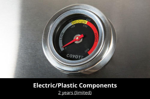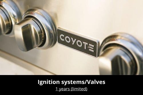 Coyote Outdoor warrants to the original purchaser at the original site of delivery with proof of purchase of each Outdoor Gas grill/Side burner that when subject to normal residential use, it is free from defects in workmanship and materials for the periods specified below. This warranty excludes grills used in rental and commercial applications. This warranty excludes surface corrosion, scratches and discoloration which may occur during normal use. It does NOT cover labor or labor related charges. There will be shipping and handling charge for the delivery of the warranty part(s).